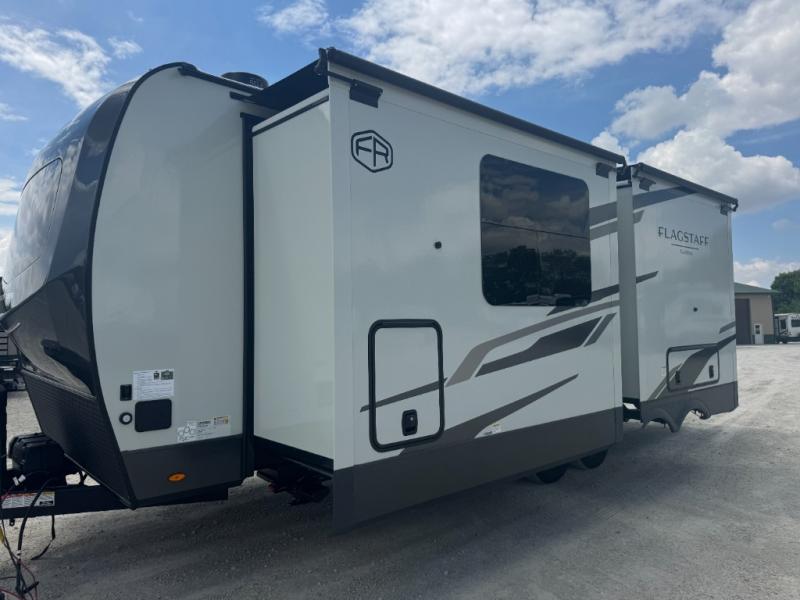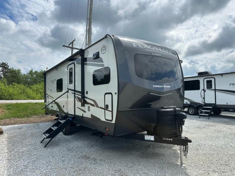 Each one of these Forest River Flagstaff Classic fifth wheels or travel trailers will be your home on wheels! Their quality craftsmanship and attention to detail shines through the enclosed underbelly, the radius roof with vaulted interior ceilings, and six-sided fully aluminum-framed floor, walls, and roof. Towing your unit will be easy with the Goodyear Endurance tires plus a tire pressure monitoring system with a monitor. The interior of each Flagstaff Classic model will have you feeling right at home with Sedonwood cabinetry, soft closing drawer slides, reading lights in the bedroom, plus many more comforts.