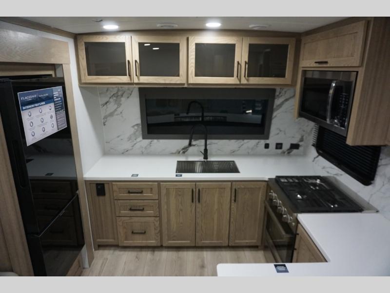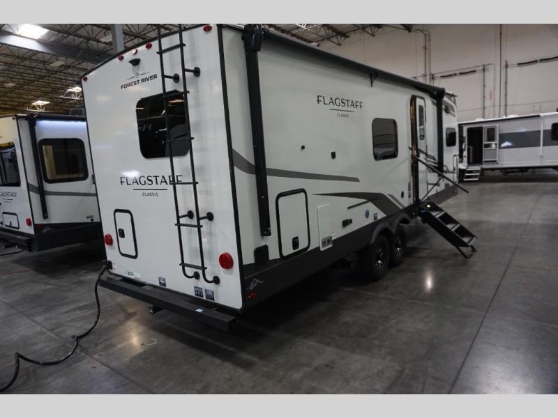 Each one of these Forest River Flagstaff Classic fifth wheels or travel trailers will be your home on wheels! Their quality craftsmanship and attention to detail shines through the enclosed underbelly, the fully laminated walkable roof, and six-sided full-aluminum frame. Towing your unit will be easy with the Goodyear Endurance tires plus RoadTech tire pressure monitoring. Additional exterior features include a 200W solar panel, slam baggage doors, a Key-Alike lock system, and double 30 lb. LP tanks to name a few conveniences. Head inside to find a residential style gas range, solid surface kitchen and bath countertops, soft close hidden cabinet hinges, and more comforts!