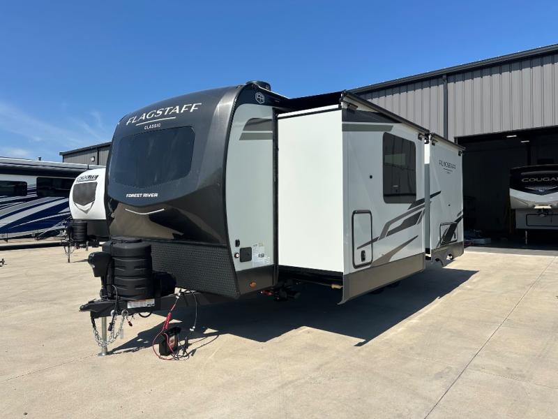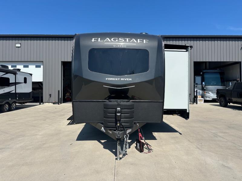 Each one of these Forest River Flagstaff Classic fifth wheels or travel trailers will be your home on wheels! Their quality craftsmanship and attention to detail shines through the enclosed underbelly, the fully laminated walkable roof, and six-sided full-aluminum frame. Towing your unit will be easy with the Goodyear Endurance tires plus RoadTech tire pressure monitoring. Additional exterior features include a 200W solar panel, slam baggage doors, a Key-Alike lock system, and double 30 lb. LP tanks to name a few conveniences. Head inside to find a residential style gas range, solid surface kitchen and bath countertops, soft close hidden cabinet hinges, and more comforts!
