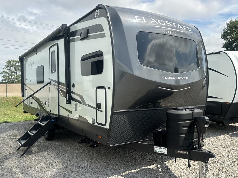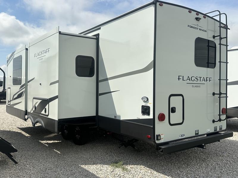 Each one of these Forest River Flagstaff Classic fifth wheels or travel trailers will be your home on wheels! Their quality craftsmanship and attention to detail shines through the enclosed underbelly, the fully laminated walkable roof, and six-sided full-aluminum frame. Towing your unit will be easy with the Goodyear Endurance tires plus RoadTech tire pressure monitoring. Additional exterior features include a 200W solar panel, slam baggage doors, a Key-Alike lock system, and double 30 lb. LP tanks to name a few conveniences. Head inside to find a residential style gas range, solid surface kitchen and bath countertops, soft close hidden cabinet hinges, and more comforts!