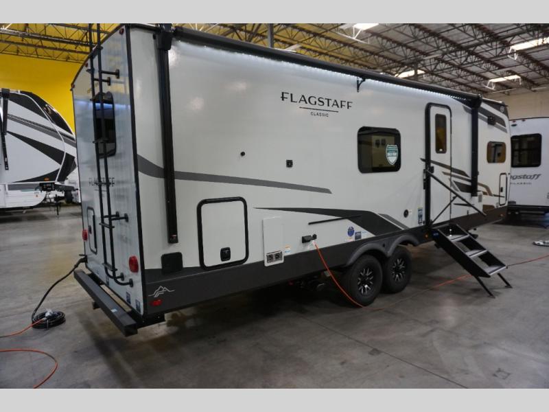 Each one of these Forest River Flagstaff Classic fifth wheels or travel trailers will be your home on wheels! Their quality craftsmanship and attention to detail shines through the enclosed underbelly, the fully laminated walkable roof, and six-sided full-aluminum frame. Towing your unit will be easy with the Goodyear Endurance tires plus RoadTech tire pressure monitoring. Additional exterior features include a 200W solar panel, slam baggage doors, a Key-Alike lock system, and double 30 lb. LP tanks to name a few conveniences. Head inside to find a residential style gas range, solid surface kitchen and bath countertops, soft close hidden cabinet hinges, and more comforts!