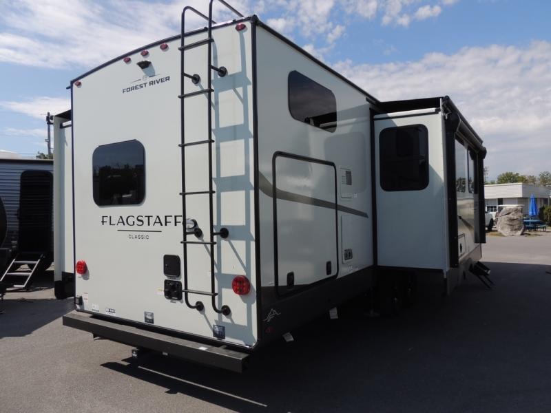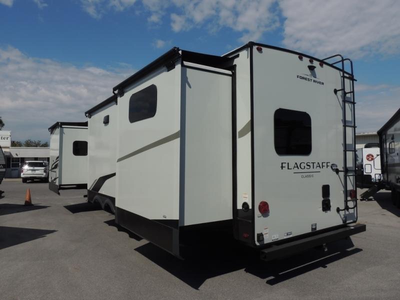 Each one of these Forest River Flagstaff Classic fifth wheels or travel trailers will be your home on wheels! Their quality craftsmanship and attention to detail shines through the enclosed underbelly, the fully laminated walkable roof, and six-sided full-aluminum frame. Towing your unit will be easy with the Goodyear Endurance tires plus RoadTech tire pressure monitoring. Additional exterior features include a 200W solar panel, slam baggage doors, a Key-Alike lock system, and double 30 lb. LP tanks to name a few conveniences. Head inside to find a residential style gas range, solid surface kitchen and bath countertops, soft close hidden cabinet hinges, and more comforts!