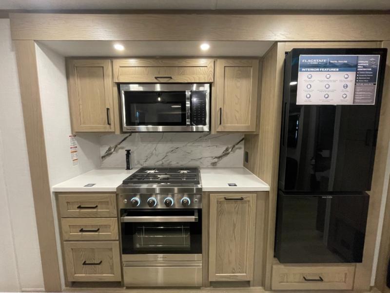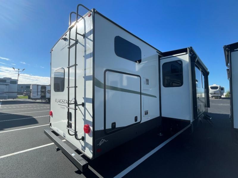 Each one of these Forest River Flagstaff Classic fifth wheels or travel trailers will be your home on wheels! Their quality craftsmanship and attention to detail shines through the enclosed underbelly, the fully laminated walkable roof, and six-sided full-aluminum frame. Towing your unit will be easy with the Goodyear Endurance tires plus RoadTech tire pressure monitoring. Additional exterior features include a 200W solar panel, slam baggage doors, a Key-Alike lock system, and double 30 lb. LP tanks to name a few conveniences. Head inside to find a residential style gas range, solid surface kitchen and bath countertops, soft close hidden cabinet hinges, and more comforts!