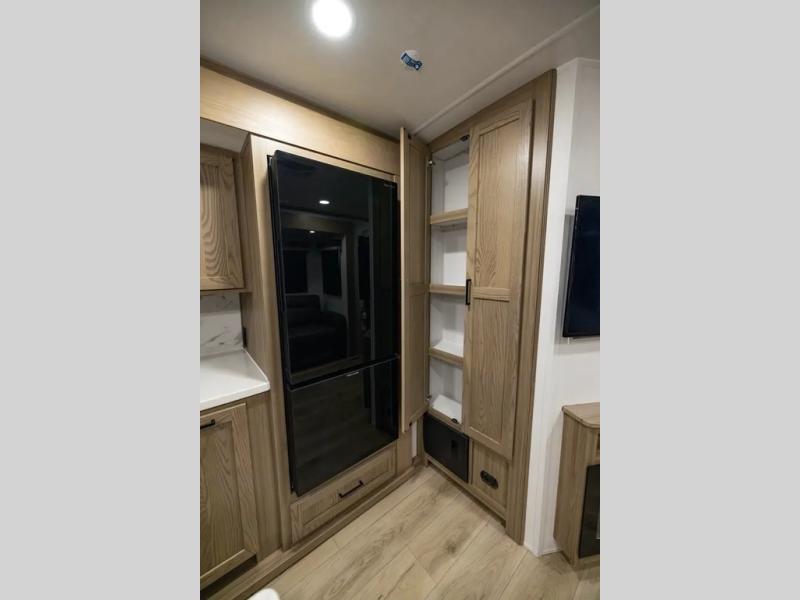 The whole family will love camping in this travel trailer! The kids have their own privacy within the rear bunkhouse that features a 42" x 72" upper bunk with a TV option below it along the curbside, and a flip-up bunk with a 68" pull-out sofa below it along the roadside. After you have prepared a delicious home-cooked meal with the three-burner cooktop and kitchen island, you can head to the 44" x 81" U-shaped dinette where everyone can gather around. You could even prepare dinner at the outside kitchen, set up a table and chairs, and eat underneath one of the two power awnings. The 60" hide-a-bed sofa is the perfect place to sit while enjoying the fireplace or watching your favorite movie on the Smart TV. A dual-entry bathroom makes it easy for everyone to access especially those staying in the front private bedroom!