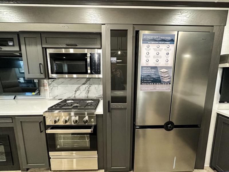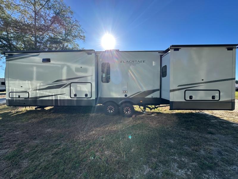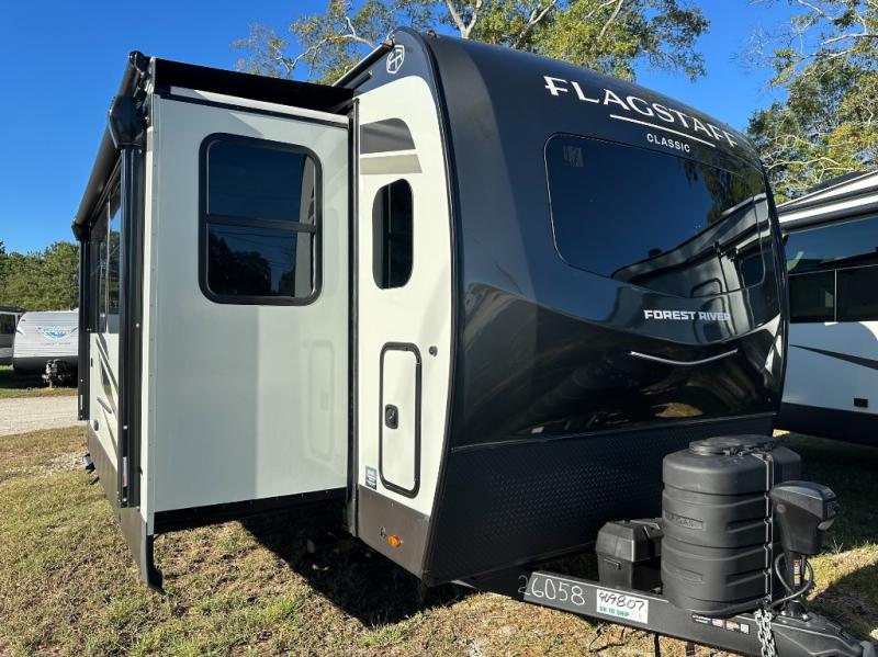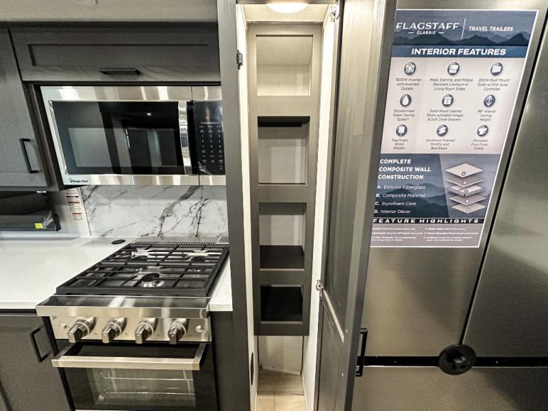 Each one of these Forest River Flagstaff Classic fifth wheels or travel trailers will be your home on wheels! Their quality craftsmanship and attention to detail shines through the enclosed underbelly, the fully laminated walkable roof, and six-sided full-aluminum frame. Towing your unit will be easy with the Goodyear Endurance tires plus RoadTech tire pressure monitoring. Additional exterior features include a 200W solar panel, slam baggage doors, a Key-Alike lock system, and double 30 lb. LP tanks to name a few conveniences. Head inside to find a residential style gas range, solid surface kitchen and bath countertops, soft close hidden cabinet hinges, and more comforts!