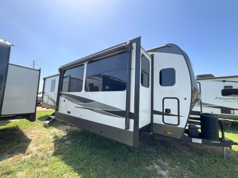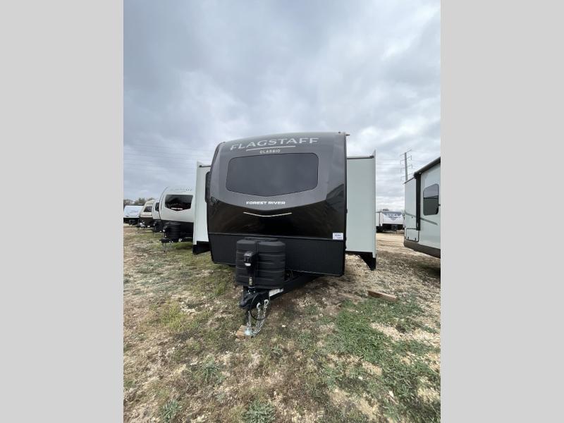 Each one of these Forest River Flagstaff Classic fifth wheels or travel trailers will be your home on wheels! Their quality craftsmanship and attention to detail shines through the enclosed underbelly, the fully laminated walkable roof, and six-sided full-aluminum frame. Towing your unit will be easy with the Goodyear Endurance tires plus RoadTech tire pressure monitoring. Additional exterior features include a 200W solar panel, slam baggage doors, a Key-Alike lock system, and double 30 lb. LP tanks to name a few conveniences. Head inside to find a residential style gas range, solid surface kitchen and bath countertops, soft close hidden cabinet hinges, and more comforts!