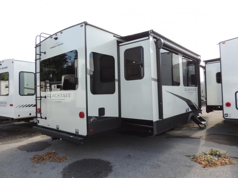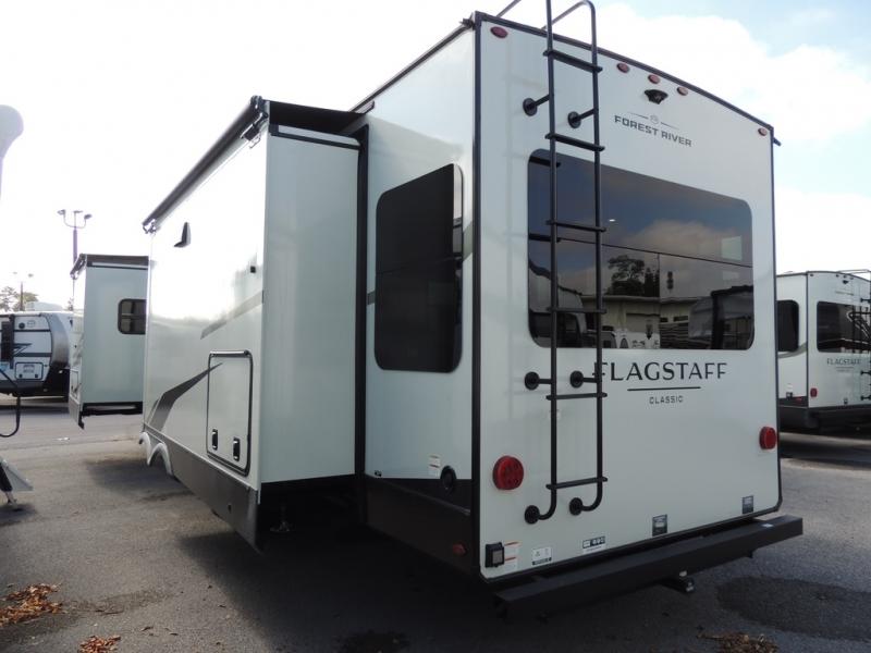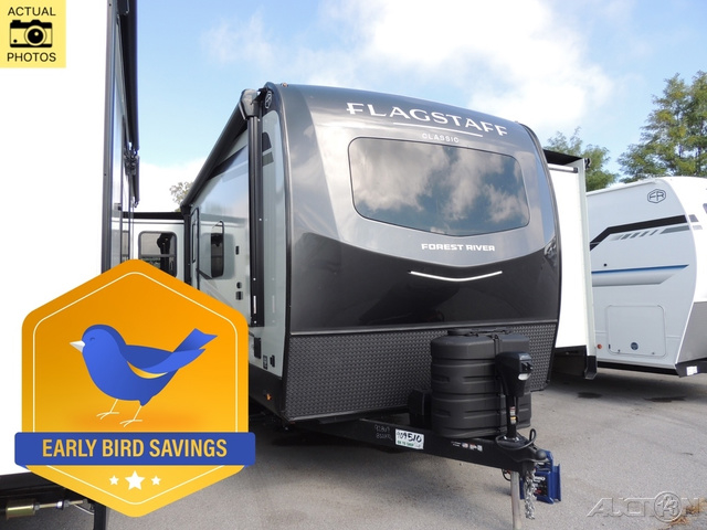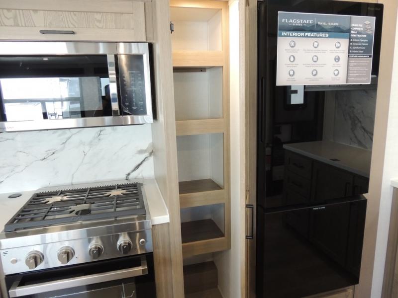 Each one of these Forest River Flagstaff Classic fifth wheels or travel trailers will be your home on wheels! Their quality craftsmanship and attention to detail shines through the enclosed underbelly, the fully laminated walkable roof, and six-sided full-aluminum frame. Towing your unit will be easy with the Goodyear Endurance tires plus RoadTech tire pressure monitoring. Additional exterior features include a 200W solar panel, slam baggage doors, a Key-Alike lock system, and double 30 lb. LP tanks to name a few conveniences. Head inside to find a residential style gas range, solid surface kitchen and bath countertops, soft close hidden cabinet hinges, and more comforts!