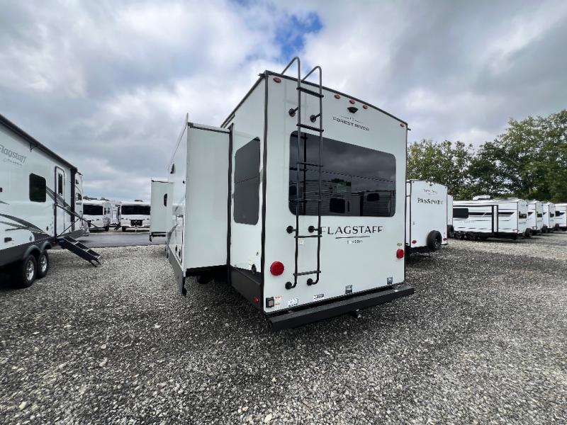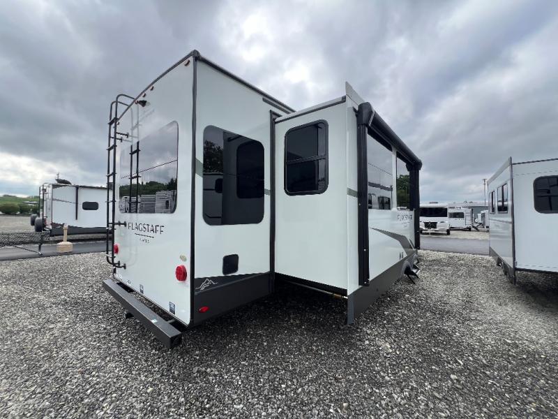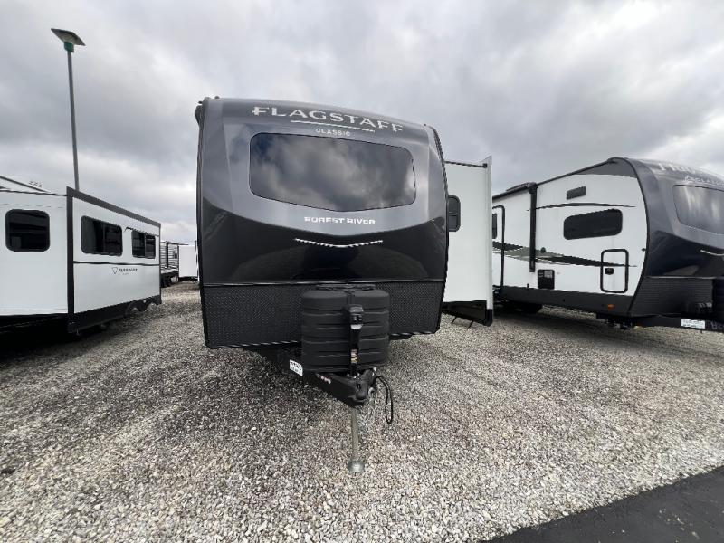 Each one of these Forest River Flagstaff Classic fifth wheels or travel trailers will be your home on wheels! Their quality craftsmanship and attention to detail shines through the enclosed underbelly, the fully laminated walkable roof, and six-sided full-aluminum frame. Towing your unit will be easy with the Goodyear Endurance tires plus RoadTech tire pressure monitoring. Additional exterior features include a 200W solar panel, slam baggage doors, a Key-Alike lock system, and double 30 lb. LP tanks to name a few conveniences. Head inside to find a residential style gas range, solid surface kitchen and bath countertops, soft close hidden cabinet hinges, and more comforts!