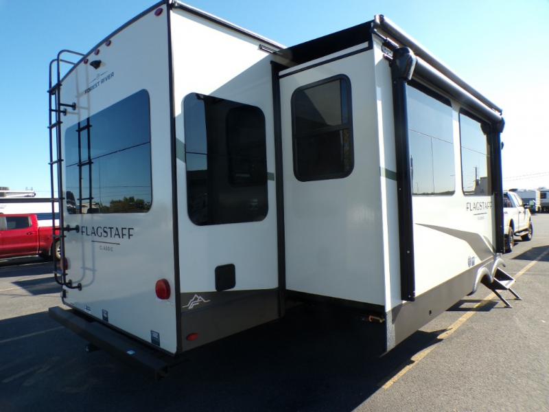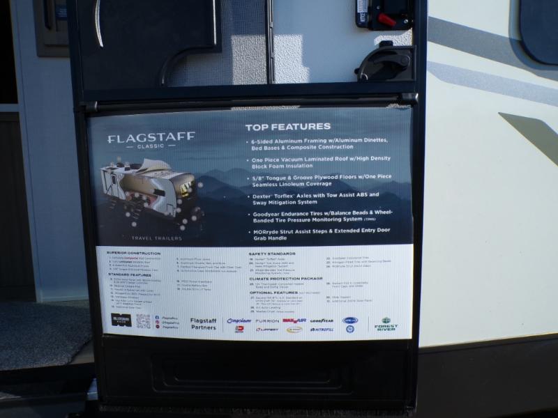 Each one of these Forest River Flagstaff Classic fifth wheels or travel trailers will be your home on wheels! Their quality craftsmanship and attention to detail shines through the enclosed underbelly, the fully laminated walkable roof, and six-sided full-aluminum frame. Towing your unit will be easy with the Goodyear Endurance tires plus RoadTech tire pressure monitoring. Additional exterior features include a 200W solar panel, slam baggage doors, a Key-Alike lock system, and double 30 lb. LP tanks to name a few conveniences. Head inside to find a residential style gas range, solid surface kitchen and bath countertops, soft close hidden cabinet hinges, and more comforts!