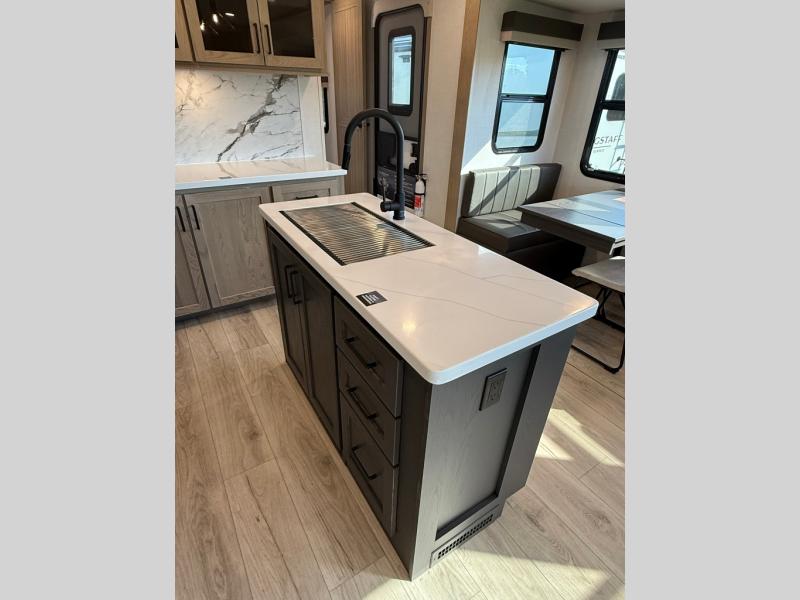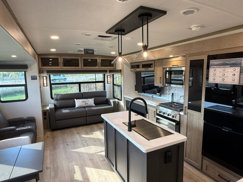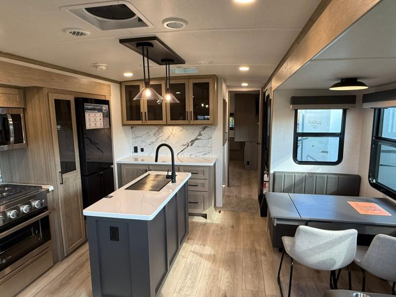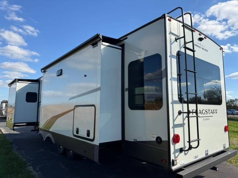Each one of these Forest River Flagstaff Classic fifth wheels or travel trailers will be your home on wheels! Their quality craftsmanship and attention to detail shines through the enclosed underbelly, the fully laminated walkable roof, and six-sided full-aluminum frame. Towing your unit will be easy with the Goodyear Endurance tires plus RoadTech tire pressure monitoring. Additional exterior features include a 200W solar panel, slam baggage doors, a Key-Alike lock system, and double 30 lb. LP tanks to name a few conveniences. Head inside to find a residential style gas range, solid surface kitchen and bath countertops, soft close hidden cabinet hinges, and more comforts!