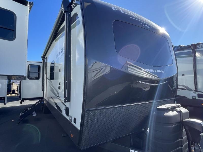Each one of these Forest River Flagstaff Classic fifth wheels or travel trailers will be your home on wheels! Their quality craftsmanship and attention to detail shines through the enclosed underbelly, the fully laminated walkable roof, and six-sided full-aluminum frame. Towing your unit will be easy with the Goodyear Endurance tires plus RoadTech tire pressure monitoring. Additional exterior features include a 200W solar panel, slam baggage doors, a Key-Alike lock system, and double 30 lb. LP tanks to name a few conveniences. Head inside to find a residential style gas range, solid surface kitchen and bath countertops, soft close hidden cabinet hinges, and more comforts!