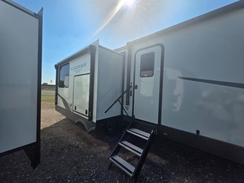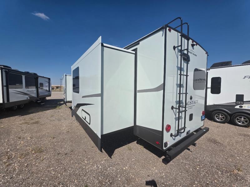Each one of these Forest River Flagstaff Classic fifth wheels or travel trailers will be your home on wheels! Their quality craftsmanship and attention to detail shines through the enclosed underbelly, the fully laminated walkable roof, and six-sided full-aluminum frame. Towing your unit will be easy with the Goodyear Endurance tires plus RoadTech tire pressure monitoring. Additional exterior features include a 200W solar panel, slam baggage doors, a Key-Alike lock system, and double 30 lb. LP tanks to name a few conveniences. Head inside to find a residential style gas range, solid surface kitchen and bath countertops, soft close hidden cabinet hinges, and more comforts!