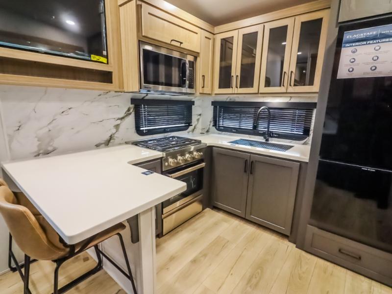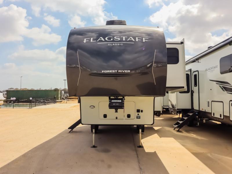 Each one of these Forest River Flagstaff Classic fifth wheels or travel trailers will be your home on wheels! Their quality craftsmanship and attention to detail shines through the enclosed underbelly, the fully laminated walkable roof, and six-sided full-aluminum frame. Towing your unit will be easy with the Goodyear Endurance tires plus RoadTech tire pressure monitoring. Additional exterior features include a 200W solar panel, slam baggage doors, a Key-Alike lock system, and double 30 lb. LP tanks to name a few conveniences. Head inside to find a residential style gas range, solid surface kitchen and bath countertops, soft close hidden cabinet hinges, and more comforts!