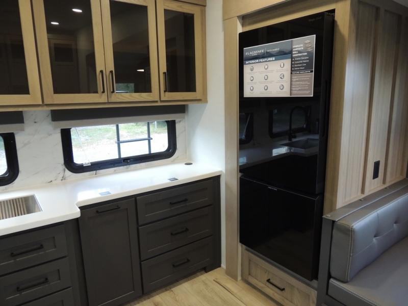 Each one of these Forest River Flagstaff Classic fifth wheels or travel trailers will be your home on wheels! Their quality craftsmanship and attention to detail shines through the enclosed underbelly, the fully laminated walkable roof, and six-sided full-aluminum frame. Towing your unit will be easy with the Goodyear Endurance tires plus RoadTech tire pressure monitoring. Additional exterior features include a 200W solar panel, slam baggage doors, a Key-Alike lock system, and double 30 lb. LP tanks to name a few conveniences. Head inside to find a residential style gas range, solid surface kitchen and bath countertops, soft close hidden cabinet hinges, and more comforts!