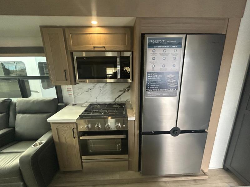 Each one of these Forest River Flagstaff Classic fifth wheels or travel trailers will be your home on wheels! Their quality craftsmanship and attention to detail shines through the enclosed underbelly, the fully laminated walkable roof, and six-sided full-aluminum frame. Towing your unit will be easy with the Goodyear Endurance tires plus RoadTech tire pressure monitoring. Additional exterior features include a 200W solar panel, slam baggage doors, a Key-Alike lock system, and double 30 lb. LP tanks to name a few conveniences. Head inside to find a residential style gas range, solid surface kitchen and bath countertops, soft close hidden cabinet hinges, and more comforts!