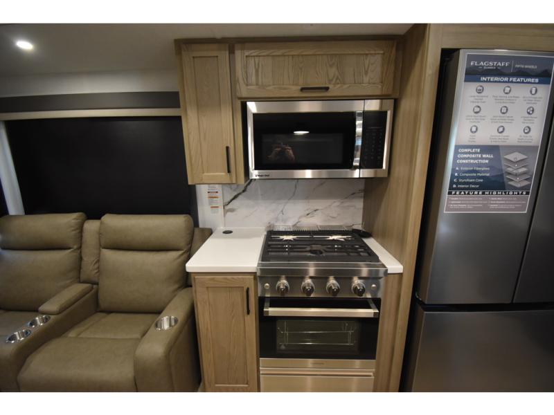 Each one of these Forest River Flagstaff Classic fifth wheels or travel trailers will be your home on wheels! Their quality craftsmanship and attention to detail shines through the enclosed underbelly, the fully laminated walkable roof, and six-sided full-aluminum frame. Towing your unit will be easy with the Goodyear Endurance tires plus RoadTech tire pressure monitoring. Additional exterior features include a 200W solar panel, slam baggage doors, a Key-Alike lock system, and double 30 lb. LP tanks to name a few conveniences. Head inside to find a residential style gas range, solid surface kitchen and bath countertops, soft close hidden cabinet hinges, and more comforts!