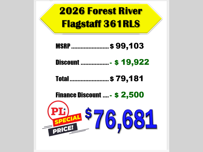 New 2026 Forest River RV Flagstaff Classic F361RLS Fifth Wheel