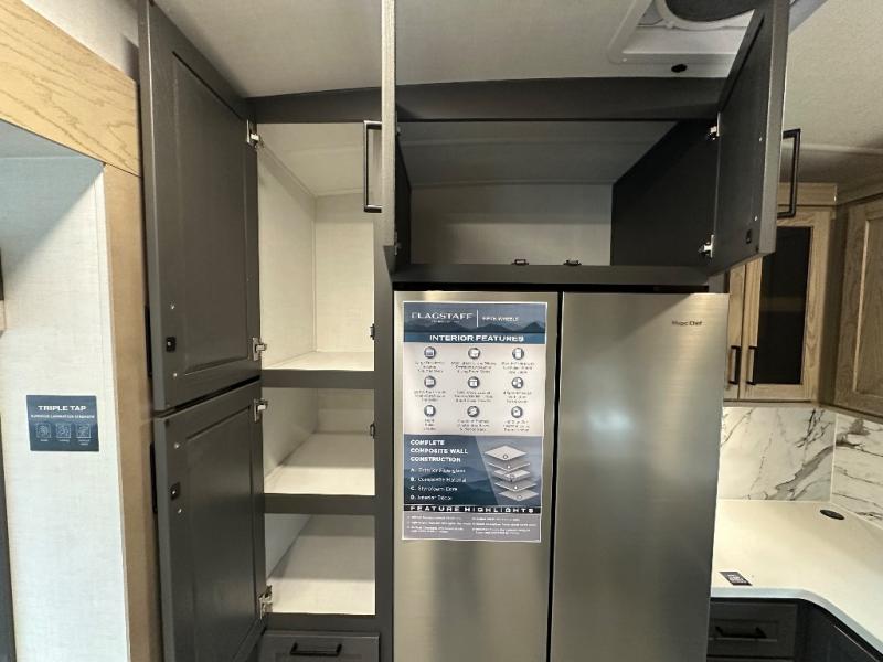 Each one of these Forest River Flagstaff Classic fifth wheels or travel trailers will be your home on wheels! Their quality craftsmanship and attention to detail shines through the enclosed underbelly, the fully laminated walkable roof, and six-sided full-aluminum frame. Towing your unit will be easy with the Goodyear Endurance tires plus RoadTech tire pressure monitoring. Additional exterior features include a 200W solar panel, slam baggage doors, a Key-Alike lock system, and double 30 lb. LP tanks to name a few conveniences. Head inside to find a residential style gas range, solid surface kitchen and bath countertops, soft close hidden cabinet hinges, and more comforts!