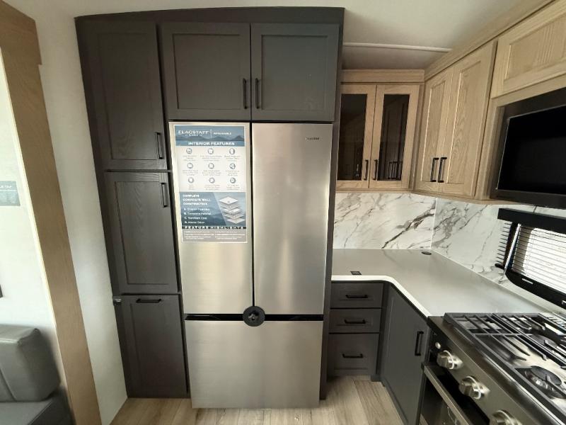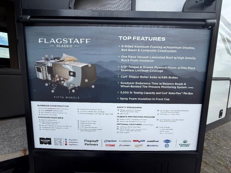 Each one of these Forest River Flagstaff Classic fifth wheels or travel trailers will be your home on wheels! Their quality craftsmanship and attention to detail shines through the enclosed underbelly, the fully laminated walkable roof, and six-sided full-aluminum frame. Towing your unit will be easy with the Goodyear Endurance tires plus RoadTech tire pressure monitoring. Additional exterior features include a 200W solar panel, slam baggage doors, a Key-Alike lock system, and double 30 lb. LP tanks to name a few conveniences. Head inside to find a residential style gas range, solid surface kitchen and bath countertops, soft close hidden cabinet hinges, and more comforts!