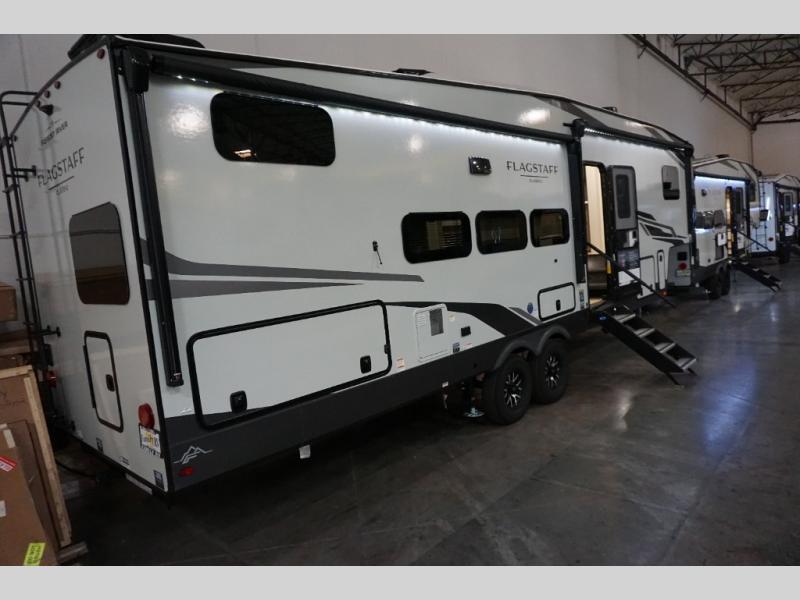 Each one of these Forest River Flagstaff Classic fifth wheels or travel trailers will be your home on wheels! Their quality craftsmanship and attention to detail shines through the enclosed underbelly, the fully laminated walkable roof, and six-sided full-aluminum frame. Towing your unit will be easy with the Goodyear Endurance tires plus RoadTech tire pressure monitoring. Additional exterior features include a 200W solar panel, slam baggage doors, a Key-Alike lock system, and double 30 lb. LP tanks to name a few conveniences. Head inside to find a residential style gas range, solid surface kitchen and bath countertops, soft close hidden cabinet hinges, and more comforts!