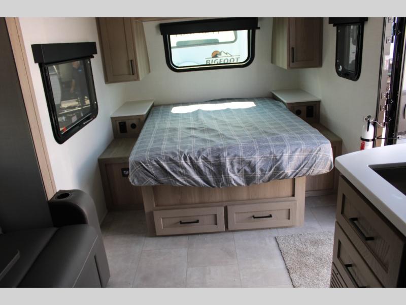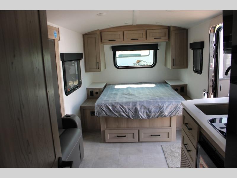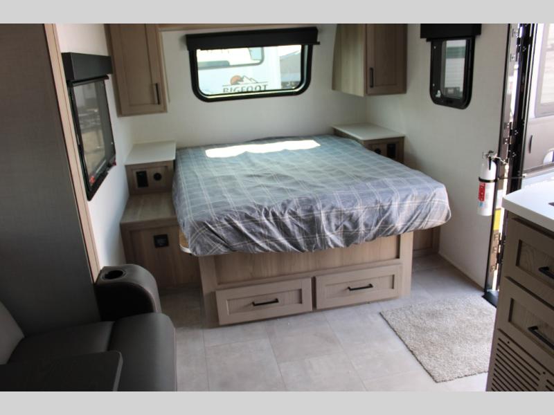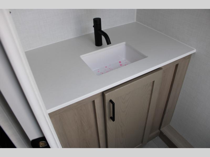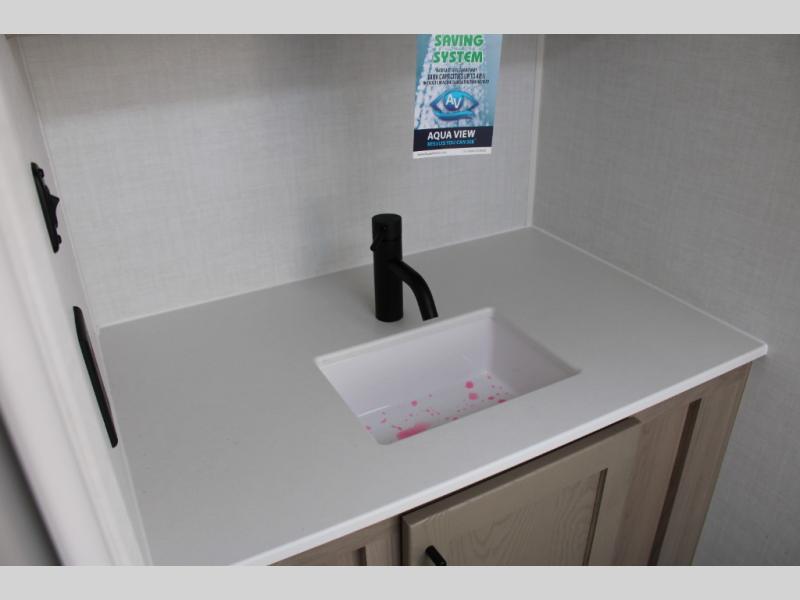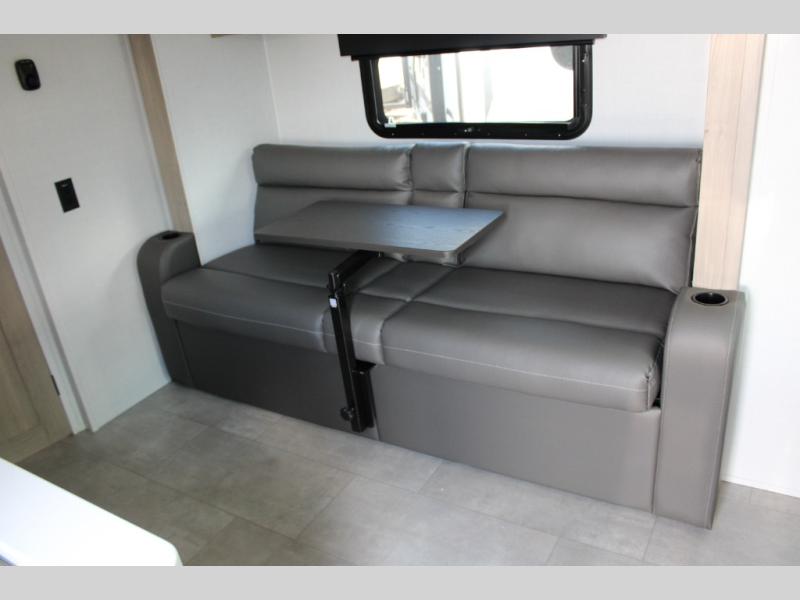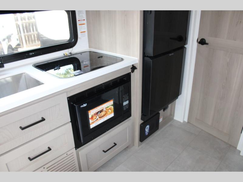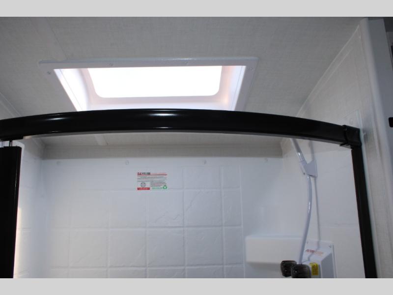 Get ready for a spacious and comfortable trip in this trailer, plus you will have a convenient rear full bathroom with an oversized shower and linen storage to utilize instead of using the campground's facilities. The walk-around full bed gives you two sides with wardrobes to claim as your own. And the kitchen offers full amenities to make meals, and the outside griddle gives you even more choices when cooking. You can relax, dine, or even work from the slide out sofa with a 30" x 15" table and watch the 32" TV. You will find storage along the exterior for your outdoor gear, plus a 14' power awning.