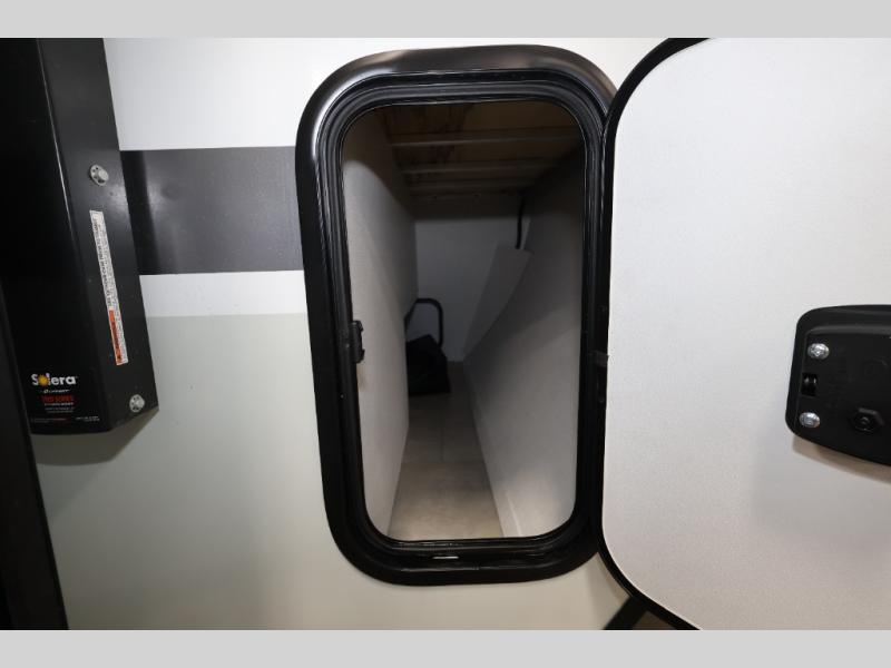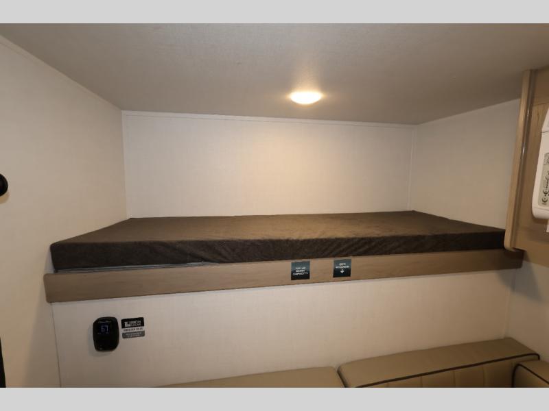 With its practical design, this trailer is designed to make your travels easy and enjoyable. The bunk beds are a fun and practical sleeping solution for kids. Perfect for sleepovers, family gatherings, or outdoor adventures! The U-dinette is a cozy spot for meals and conversation and can convert into two more sleeping spaces. The outside kitchen features a fridge and sink, perfect for alfresco dining and outdoor cooking. The shelf provides ample storage space for outdoor gear, toys, and essentials. Plus, the pass-thru storage allows for easy access to your belongings. The exterior awning creates a comfortable outdoor living space, perfect for relaxing, socializing, or enjoying the great outdoors.