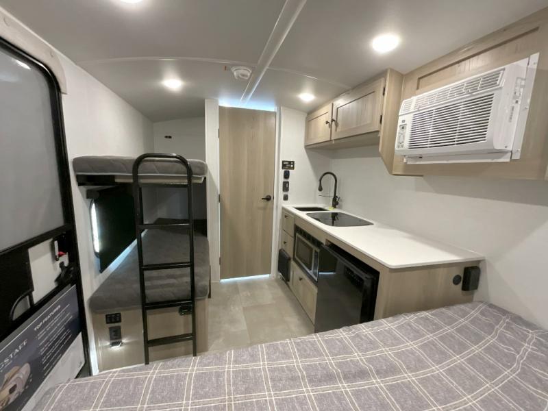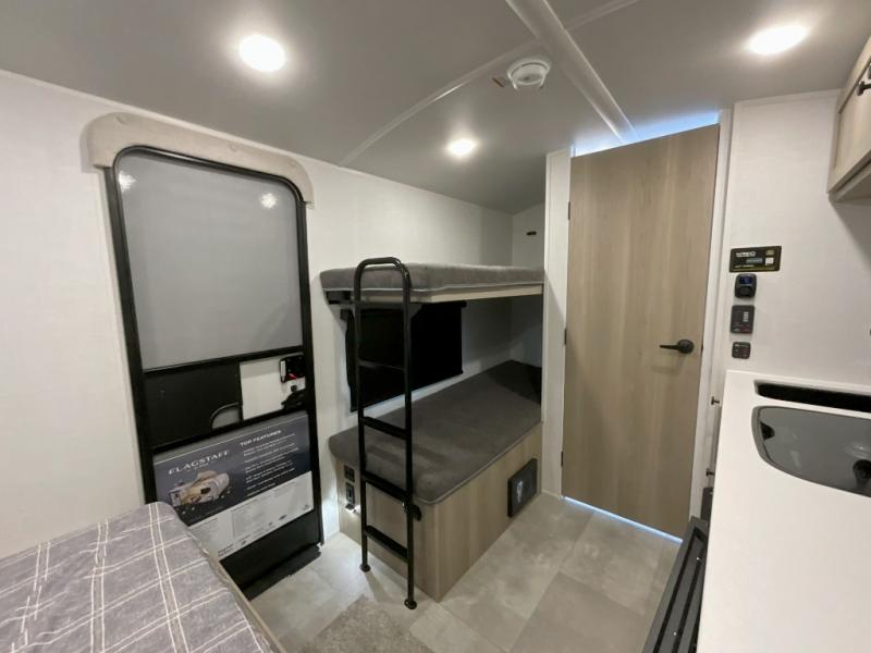 With any Flagstaff E-Pro travel trailer by Forest River, you will experience lightweight towing, style and features that will meet your needs, plus amenities that give you more than you expected! Built with interior and exterior composite sidewall construction for added strength and durability, a fully laminated roof for weather-tight protection, and aluminum truss roof bracing for enhanced stability. These trailers are equipped with Dexter leaf-spring axles for smooth towing and durable performance. The interior features an aluminum dinette, bed, and bunk, providing a strong and lightweight framework for comfortable living. Additionally, the backup camera prep ensures a safe and stress-free reversing experience. Make your selection today!