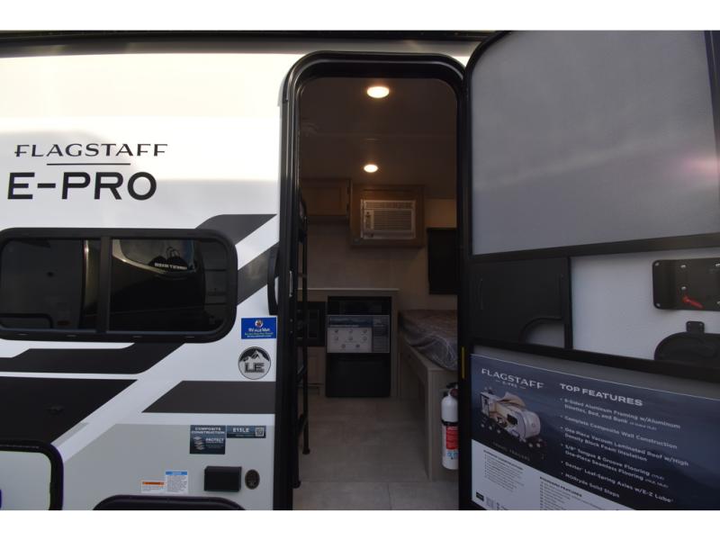 With any Flagstaff E-Pro travel trailer by Forest River, you will experience lightweight towing, style and features that will meet your needs, plus amenities that give you more than you expected! Built with interior and exterior composite sidewall construction for added strength and durability, a fully laminated roof for weather-tight protection, and aluminum truss roof bracing for enhanced stability. These trailers are equipped with Dexter leaf-spring axles for smooth towing and durable performance. The interior features an aluminum dinette, bed, and bunk, providing a strong and lightweight framework for comfortable living. Additionally, the backup camera prep ensures a safe and stress-free reversing experience. Make your selection today!