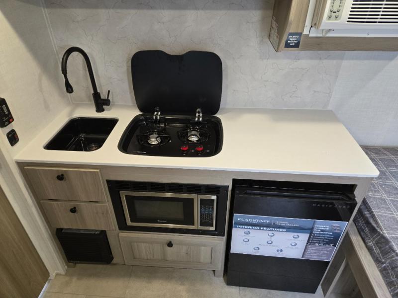 With any Flagstaff E-Pro travel trailer by Forest River, you will experience lightweight towing, style and features that will meet your needs, plus amenities that give you more than you expected! Built with interior and exterior composite sidewall construction for added strength and durability, a fully laminated roof for weather-tight protection, and aluminum truss roof bracing for enhanced stability. These trailers are equipped with Dexter leaf-spring axles for smooth towing and durable performance. The interior features an aluminum dinette, bed, and bunk, providing a strong and lightweight framework for comfortable living. Additionally, the backup camera prep ensures a safe and stress-free reversing experience. Make your selection today!