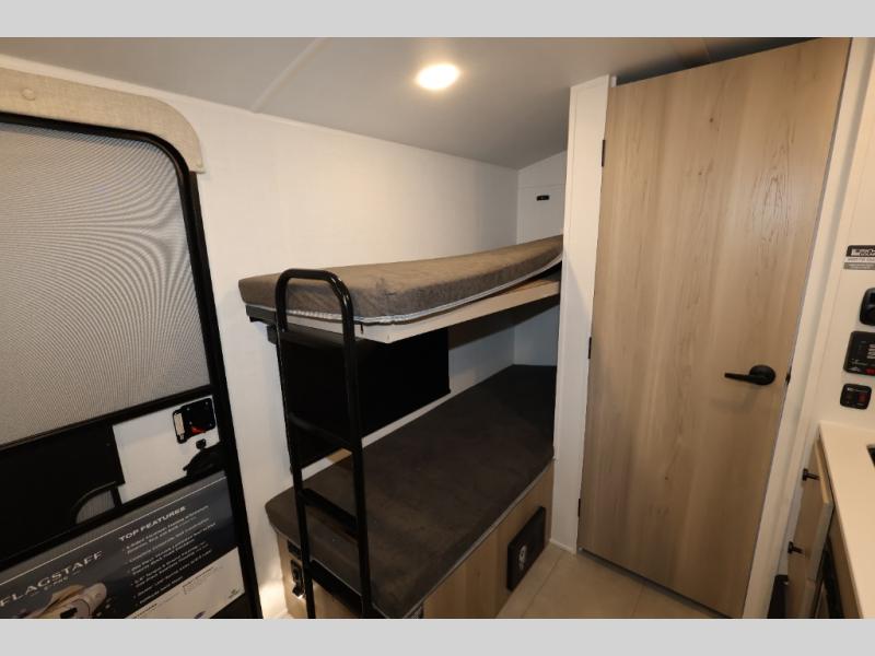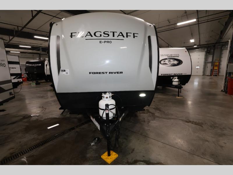 With any Flagstaff E-Pro travel trailer by Forest River, you will experience lightweight towing, style and features that will meet your needs, plus amenities that give you more than you expected! Built with interior and exterior composite sidewall construction for added strength and durability, a fully laminated roof for weather-tight protection, and aluminum truss roof bracing for enhanced stability. These trailers are equipped with Dexter leaf-spring axles for smooth towing and durable performance. The interior features an aluminum dinette, bed, and bunk, providing a strong and lightweight framework for comfortable living. Additionally, the backup camera prep ensures a safe and stress-free reversing experience. Make your selection today!