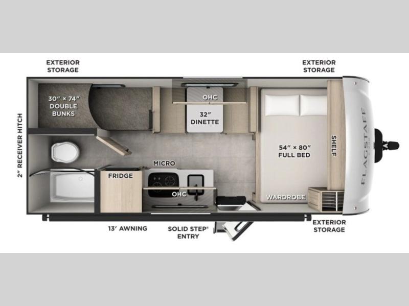 With any Flagstaff E-Pro travel trailer by Forest River, you will experience lightweight towing, style and features that will meet your needs, plus amenities that give you more than you expected! Built with interior and exterior composite sidewall construction for added strength and durability, a fully laminated roof for weather-tight protection, and aluminum truss roof bracing for enhanced stability. These trailers are equipped with Dexter leaf-spring axles for smooth towing and durable performance. The interior features an aluminum dinette, bed, and bunk, providing a strong and lightweight framework for comfortable living. Additionally, the backup camera prep ensures a safe and stress-free reversing experience. Make your selection today!