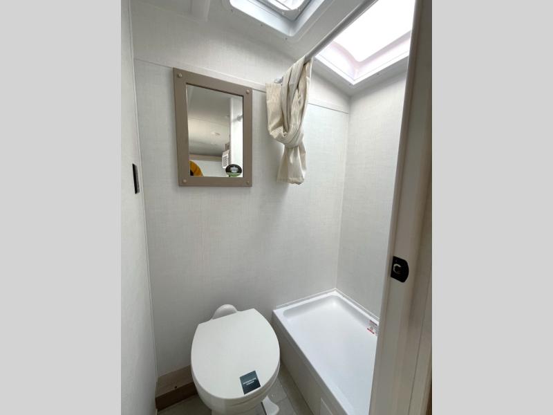Perfect for couples, families, or friends, this trailer offers a comfortable and functional space to relax, recharge, and explore. The full bathroom is a serene retreat, equipped with everything you need to refresh and rejuvenate after a day of adventure. The two bunk beds give a snug and inviting sleeping spot, perfect for kids or adults looking for a cozy spot to rest. The kitchen is equipped with a microwave for quick and easy meal prep, and a fridge to keep your favorite snacks and drinks fresh. Overhead cabinets provide plenty of storage for your gear, cookware, and essentials, keeping your trailer tidy and organized. The bed offers a restful sleeping space, perfect for unwinding after a long day of exploring.