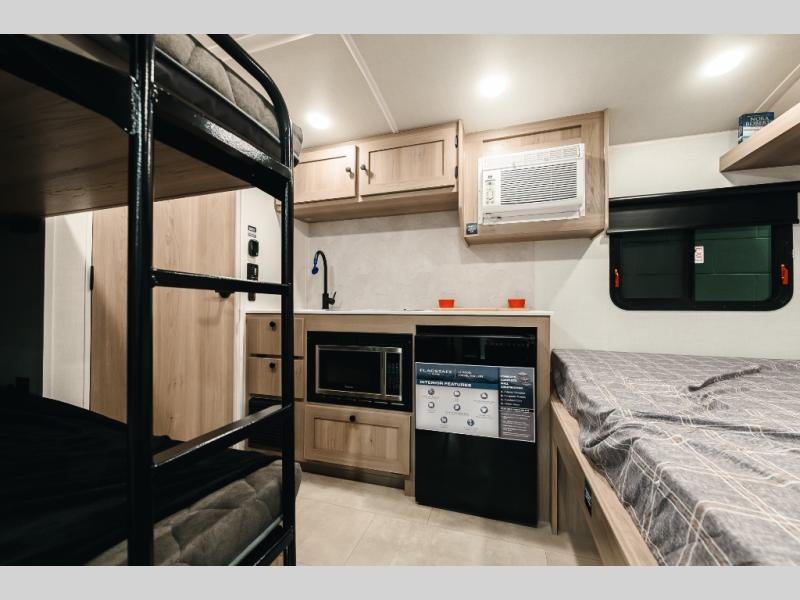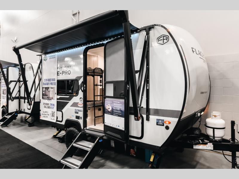 With any Flagstaff E-Pro travel trailer by Forest River, you will experience lightweight towing, style and features that will meet your needs, plus amenities that give you more than you expected! Built with interior and exterior composite sidewall construction for added strength and durability, a fully laminated roof for weather-tight protection, and aluminum truss roof bracing for enhanced stability. These trailers are equipped with Dexter leaf-spring axles for smooth towing and durable performance. The interior features an aluminum dinette, bed, and bunk, providing a strong and lightweight framework for comfortable living. Additionally, the backup camera prep ensures a safe and stress-free reversing experience. Make your selection today!