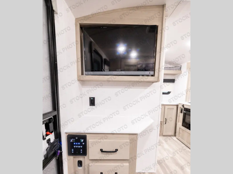 You will love the versatile living in this travel trailer! The jackknife sofa has a 30" x 15" table to relax and enjoy your meals prepared with the recessed three burner cooktop or heat up some leftovers in the convection microwave. At night you can transform the sofa into a 54" x 74" Murphy bed while you watch your favorite movie on the 32" TV across from it. You can freshen up each morning in the rear corner bathroom with the shower which has a shower miser water saver feature to efficiently use your water. The 11' power awning will protect you rain or shine as you cook at the outdoor griddle, and there is plenty of storage between the front outside storage area and the additional pass-through storage area!