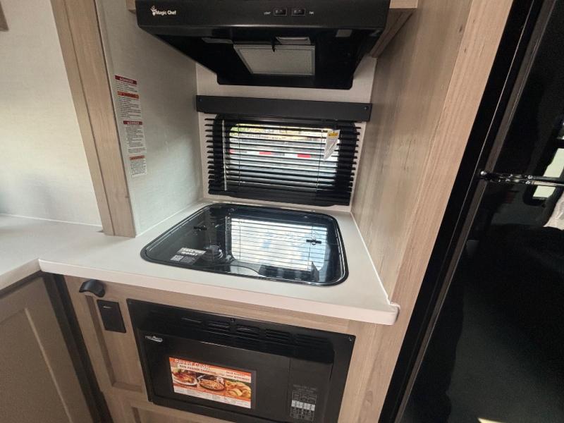 You will love the versatile living in this travel trailer! The jackknife sofa has a 30" x 15" table to relax and enjoy your meals prepared with the recessed three burner cooktop or heat up some leftovers in the convection microwave. At night you can transform the sofa into a 54" x 74" Murphy bed while you watch your favorite movie on the 32" TV across from it. You can freshen up each morning in the rear corner bathroom. The 11' power awning will protect you rain or shine as you cook at the outdoor griddle, and there is plenty of storage between the front outside storage area and the additional pass-through storage area!
