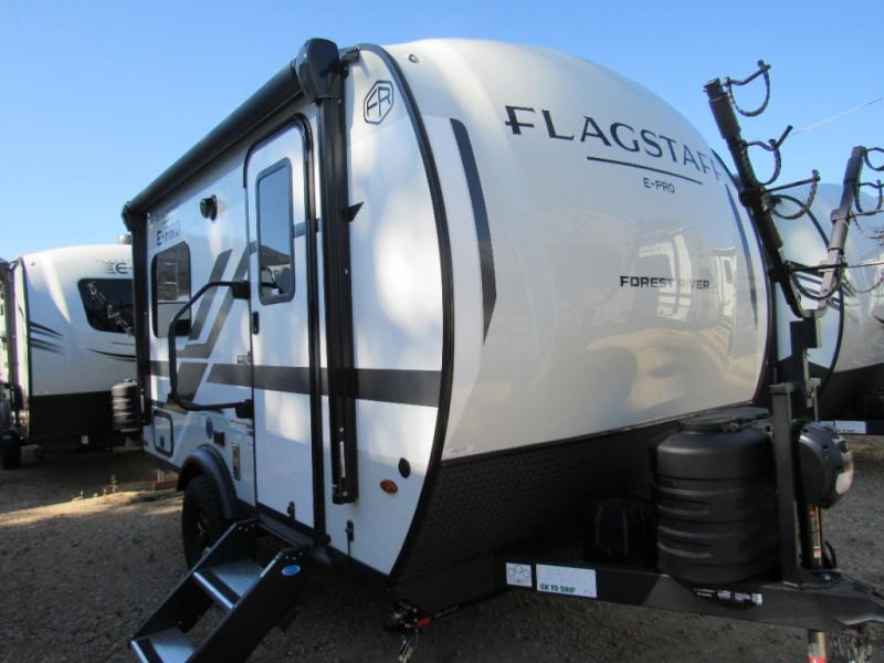 With any Flagstaff E-Pro travel trailer by Forest River, you will experience lightweight towing, style and features that will meet your needs, plus amenities that give you more than you expected! Built with interior and exterior composite sidewall construction, tongue and grove plywood flooring, and a vacuum laminated roof and walls, plus torsion axle, Rubber-Ryde suspension, and a tire pressure monitoring system for safety while traveling. And the 200 watt roof mount solar panel with 1,800-watt inverter will allow you to stay off-grid if you like. The interior offers a comfortable environment with the choice to use the air conditioner or furnace, and a 12V entertainment TV with a stereo to stay up to date on your favorite movies. Make your selection today!