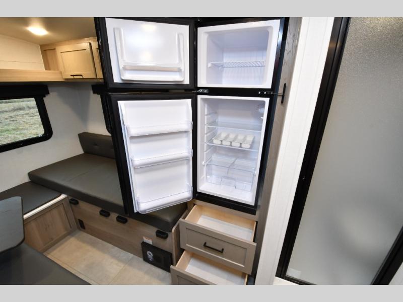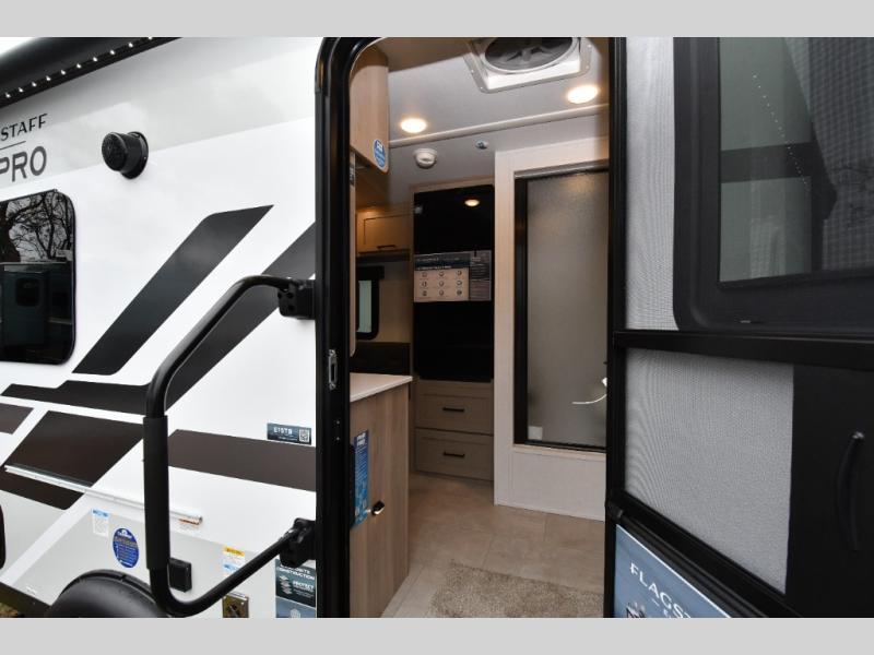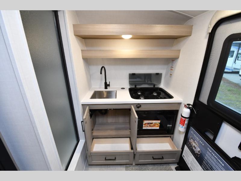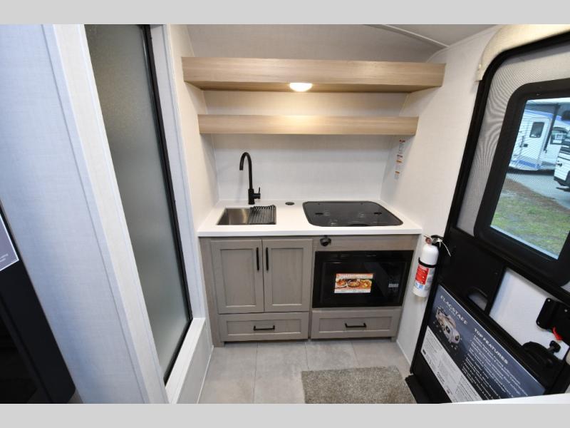Small in size but big on freedom, the 2026 Flagstaff E-Pro E15TB is built for adventurers who want simplicity without sacrificing comfort. Inside, twin beds convert into a spacious king, giving you flexible sleeping options after a long day on the trail. The front kitchen makes quick meals easy with a cooktop, microwave, and 12V refrigerator, while overhead cabinetry keeps your essentials organized and within reach. A wet bath onboard means you can skip campground facilities and stay comfortable wherever the road leads.
