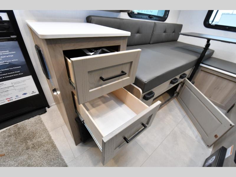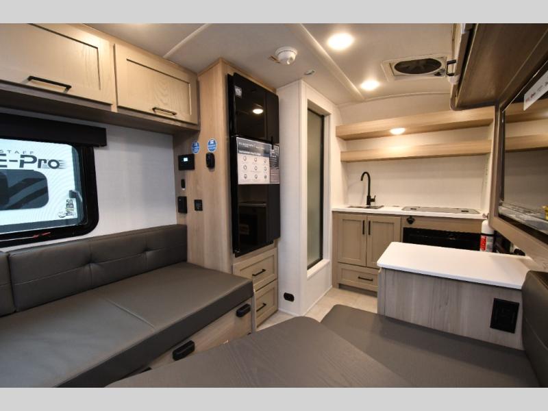 Lightweight and easy to tow, this E-Pro is designed for weekend escapes and off-grid exploring. Composite sidewalls, a fully laminated roof, and aluminum truss bracing provide durability without adding unnecessary weight. Outside, the 10' power awning creates the perfect shaded space to relax, while backup camera prep adds confidence when maneuvering into tight campsites. Nimble, efficient, and adventure-ready, the E-Pro E15TB proves that great trips don’t require a big trailer.