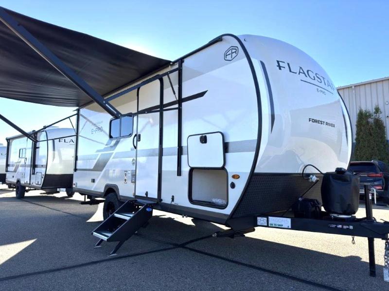 With any Flagstaff E-Pro travel trailer by Forest River, you will experience lightweight towing, style and features that will meet your needs, plus amenities that give you more than you expected! Built with interior and exterior composite sidewall construction for added strength and durability, a fully laminated roof for weather-tight protection, and aluminum truss roof bracing for enhanced stability. These trailers are equipped with Dexter leaf-spring axles for smooth towing and durable performance. The interior features an aluminum dinette, bed, and bunk, providing a strong and lightweight framework for comfortable living. Additionally, the backup camera prep ensures a safe and stress-free reversing experience. Make your selection today!