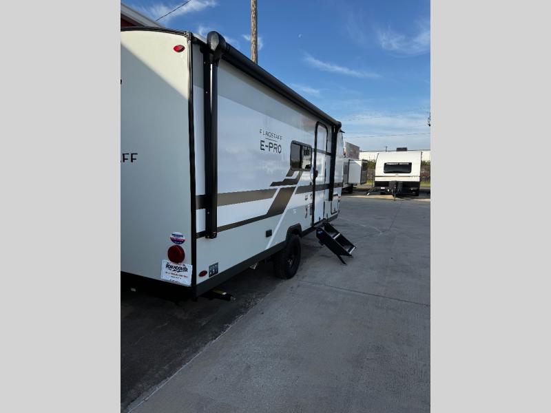 With any Flagstaff E-Pro travel trailer by Forest River, you will experience lightweight towing, style and features that will meet your needs, plus amenities that give you more than you expected! Built with interior and exterior composite sidewall construction for added strength and durability, a fully laminated roof for weather-tight protection, and aluminum truss roof bracing for enhanced stability. These trailers are equipped with Dexter leaf-spring axles for smooth towing and durable performance. The interior features an aluminum dinette, bed, and bunk, providing a strong and lightweight framework for comfortable living. Additionally, the backup camera prep ensures a safe and stress-free reversing experience. Make your selection today!