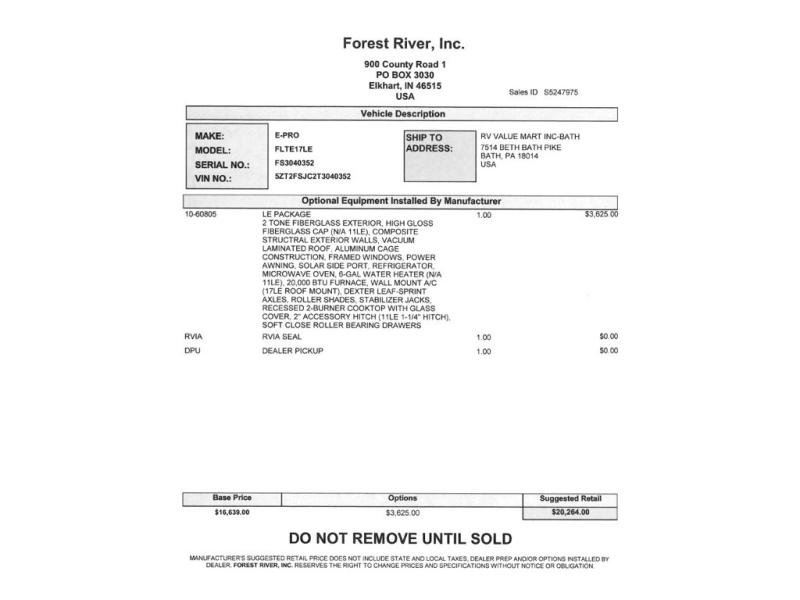 Forest River Flagstaff E- Pro LE travel trailer E17LE highlights: