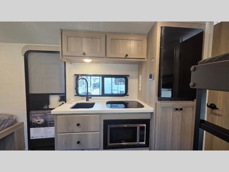 With any Flagstaff E-Pro travel trailer by Forest River, you will experience lightweight towing, style and features that will meet your needs, plus amenities that give you more than you expected! Built with interior and exterior composite sidewall construction for added strength and durability, a fully laminated roof for weather-tight protection, and aluminum truss roof bracing for enhanced stability. These trailers are equipped with Dexter leaf-spring axles for smooth towing and durable performance. The interior features an aluminum dinette, bed, and bunk, providing a strong and lightweight framework for comfortable living. Additionally, the backup camera prep ensures a safe and stress-free reversing experience. Make your selection today!