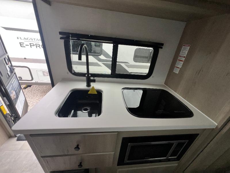 With any Flagstaff E-Pro travel trailer by Forest River, you will experience lightweight towing, style and features that will meet your needs, plus amenities that give you more than you expected! Built with interior and exterior composite sidewall construction for added strength and durability, a fully laminated roof for weather-tight protection, and aluminum truss roof bracing for enhanced stability. These trailers are equipped with Dexter leaf-spring axles for smooth towing and durable performance. The interior features an aluminum dinette, bed, and bunk, providing a strong and lightweight framework for comfortable living. Additionally, the backup camera prep ensures a safe and stress-free reversing experience. Make your selection today!