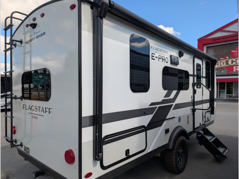With any Flagstaff E-Pro travel trailer by Forest River, you will experience lightweight towing, style and features that will meet your needs, plus amenities that give you more than you expected! Built with interior and exterior composite sidewall construction, tongue and grove plywood flooring, and a vacuum laminated roof and walls, plus torsion axle, Rubber-Ryde suspension, and a tire pressure monitoring system for safety while traveling. And the 200 watt roof mount solar panel with 1,800-watt inverter will allow you to stay off-grid if you like. The interior offers a comfortable environment with the choice to use the air conditioner or furnace, and a 12V entertainment TV with a stereo to stay up to date on your favorite movies. Make your selection today!