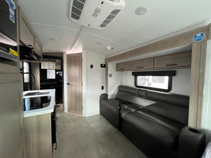 With any Flagstaff E-Pro travel trailer by Forest River, you will experience lightweight towing, style and features that will meet your needs, plus amenities that give you more than you expected! Built with interior and exterior composite sidewall construction, tongue and grove plywood flooring, and a vacuum laminated roof and walls, plus torsion axle, Rubber-Ryde suspension, and a tire pressure monitoring system for safety while traveling. And the 200 watt roof mount solar panel with 1,800-watt inverter will allow you to stay off-grid if you like. The interior offers a comfortable environment with the choice to use the air conditioner or furnace, and a 12V entertainment TV with a stereo to stay up to date on your favorite movies. Make your selection today!