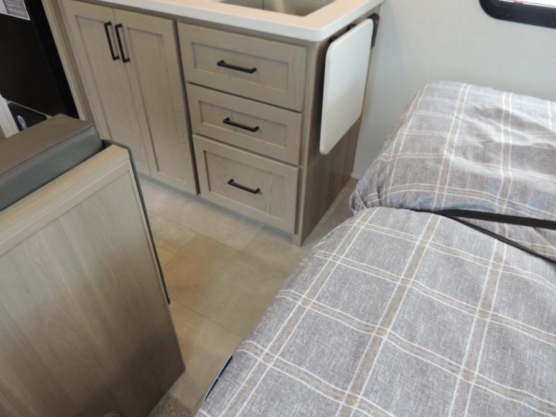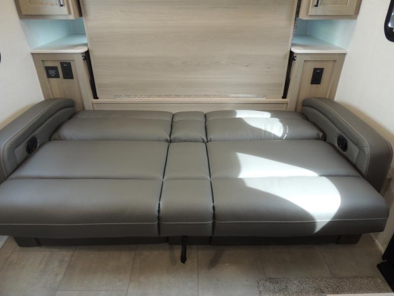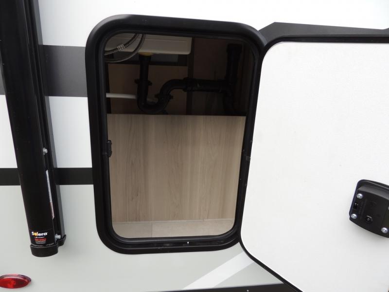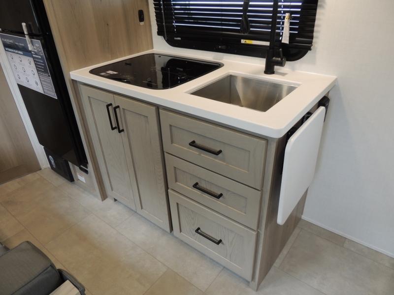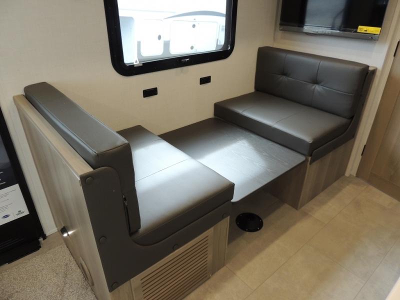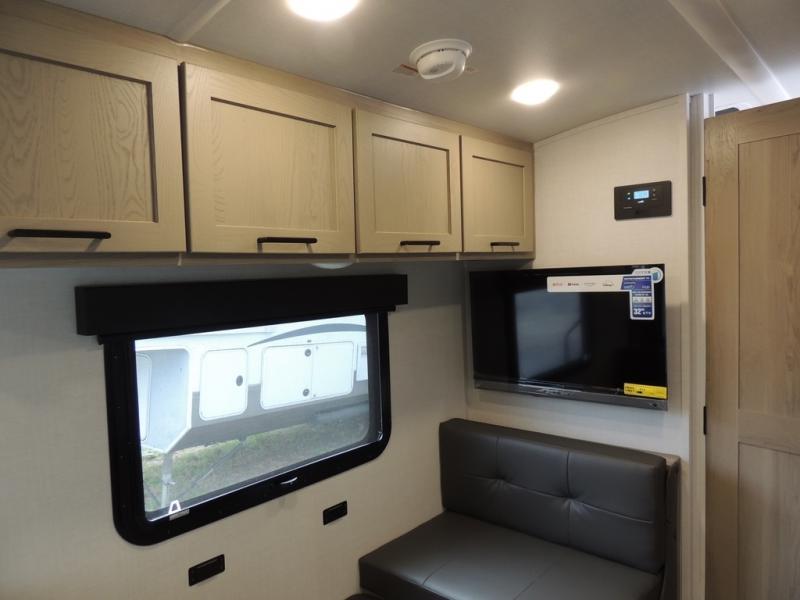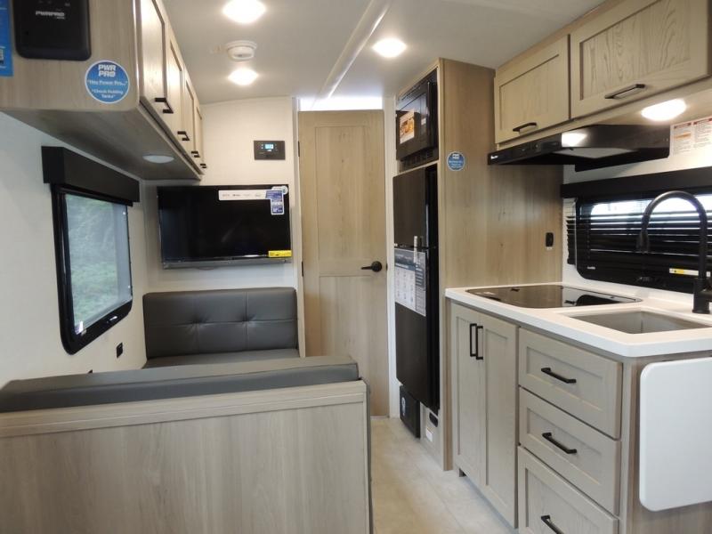 Whether you enjoy staying at the campground for a weekend or longer and/or you enjoy off-grid camping, this 20' 2" long trailer gives you lots of interior space and versatility to enjoy each and every trip. From the Murphy bed/sofa combo up front offering sleeping space and seating depending on which you prefer at the time, to the full rear bathroom which also offers overhead storage, you will have everything you need. And the kitchen cooktop, microwave and 12V refrigerator allow you to make meals and store leftovers. Two can dine at the booth dinette or you can eat outdoors under the 14' power awning.