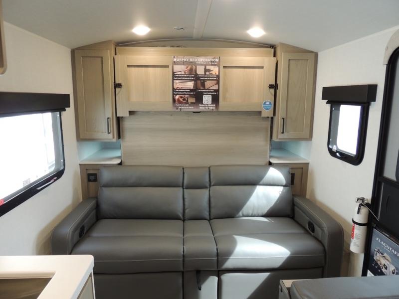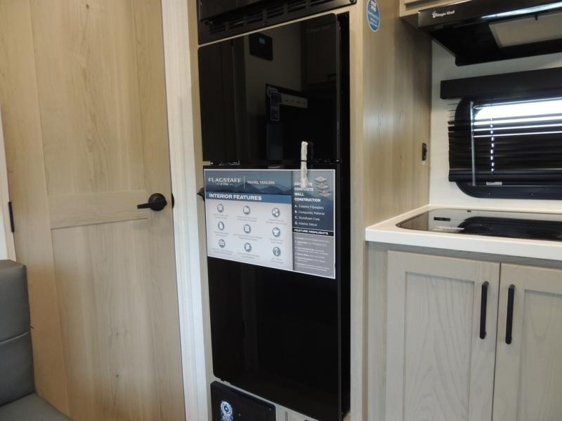 With any Flagstaff E-Pro travel trailer by Forest River, you will experience lightweight towing, style and features that will meet your needs, plus amenities that give you more than you expected! Built with interior and exterior composite sidewall construction, tongue and grove plywood flooring, and a vacuum laminated roof and walls, plus torsion axle, Rubber-Ryde suspension, and a tire pressure monitoring system for safety while traveling. And the 200 watt roof mount solar panel with 1,800-watt inverter will allow you to stay off-grid if you like. The interior offers a comfortable environment with the choice to use the air conditioner or furnace, and a 12V entertainment TV with a stereo to stay up to date on your favorite movies. Make your selection today!