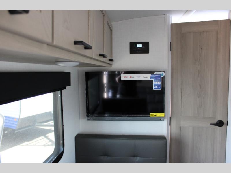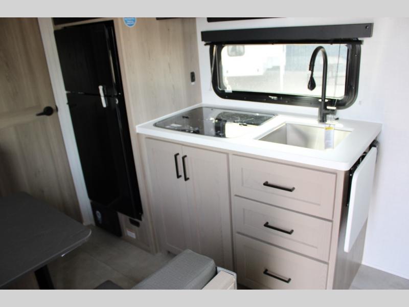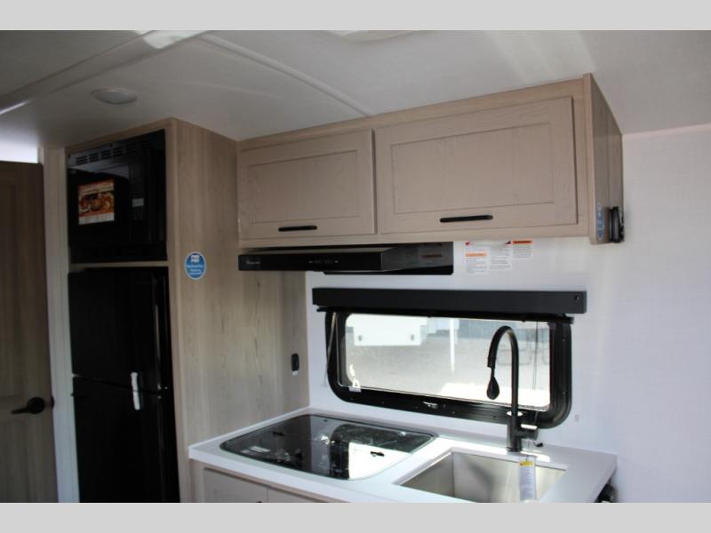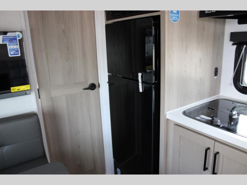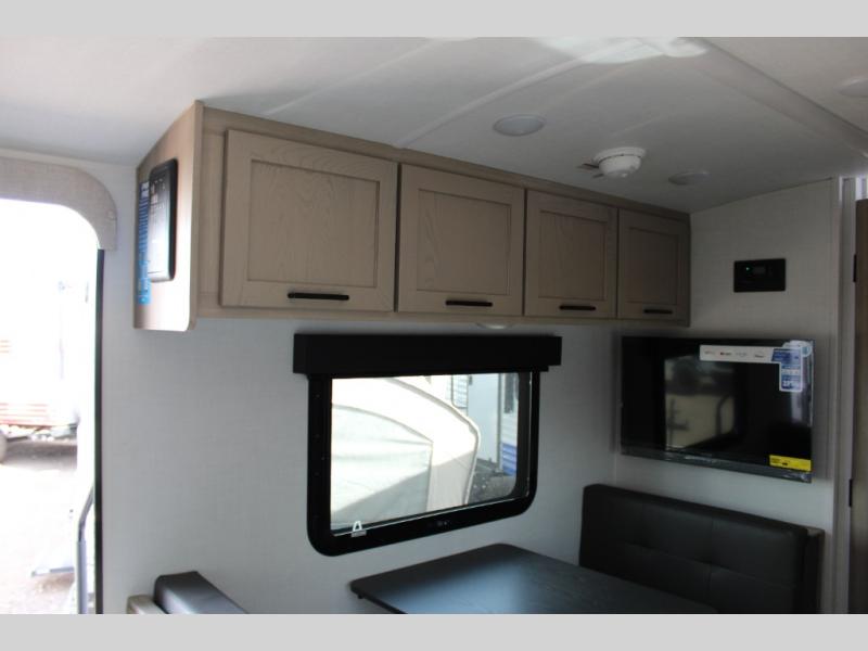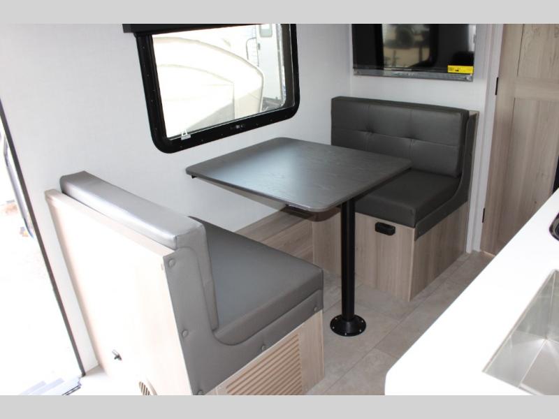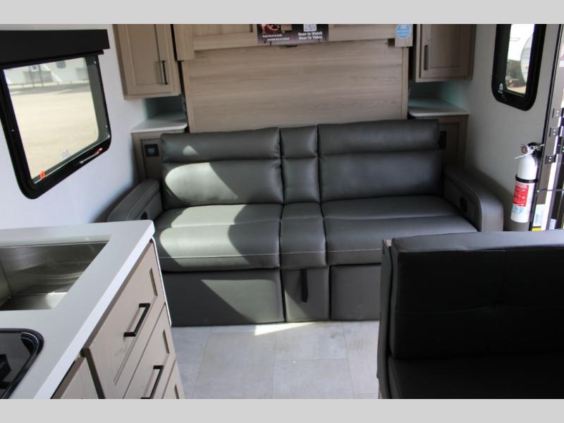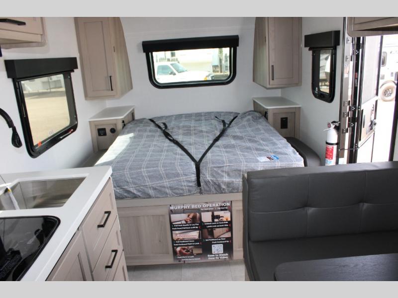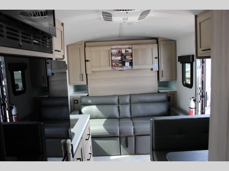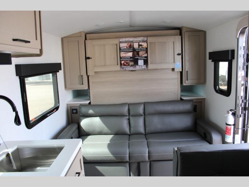 Whether you enjoy staying at the campground for a weekend or longer and/or you enjoy off-grid camping, this 20' 2" long trailer gives you lots of interior space and versatility to enjoy each and every trip. From the Murphy bed/sofa combo up front offering sleeping space and seating depending on which you prefer at the time, to the full rear bathroom which also offers overhead storage, you will have everything you need. And the kitchen cooktop, microwave and 12V refrigerator allow you to make meals and store leftovers. Two can dine at the booth dinette or you can eat outdoors under the 14' power awning.