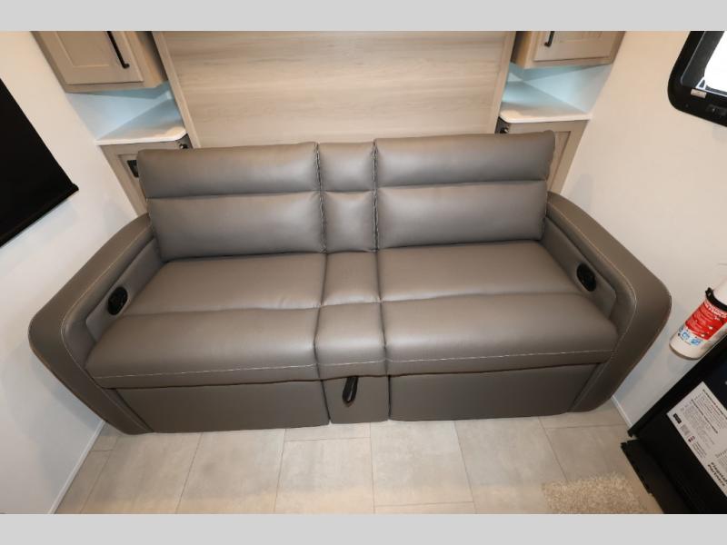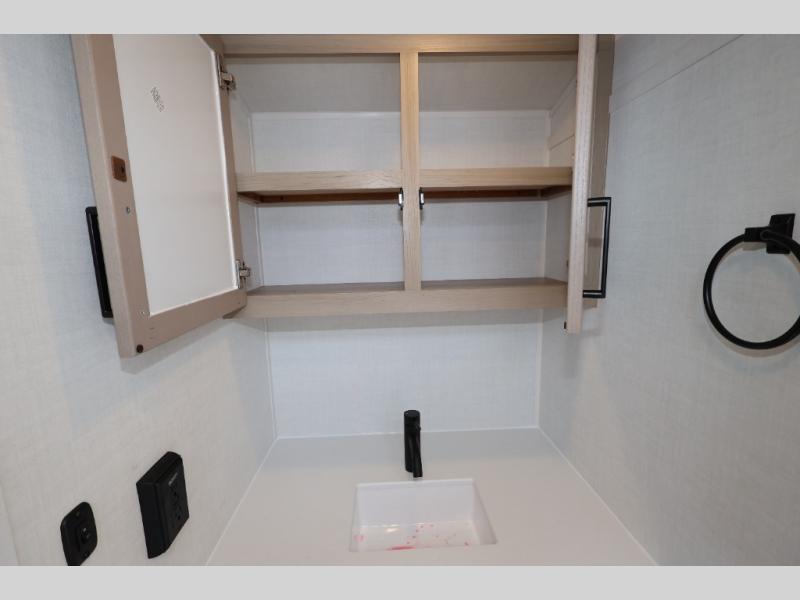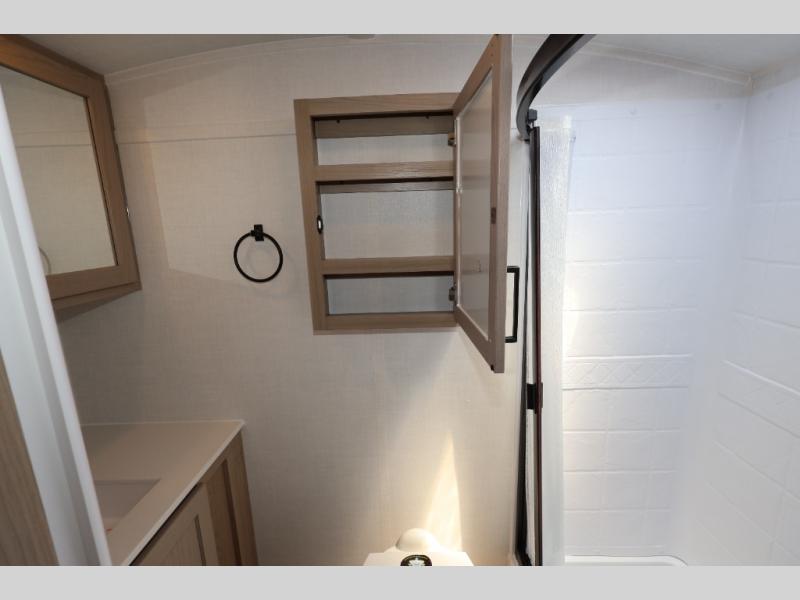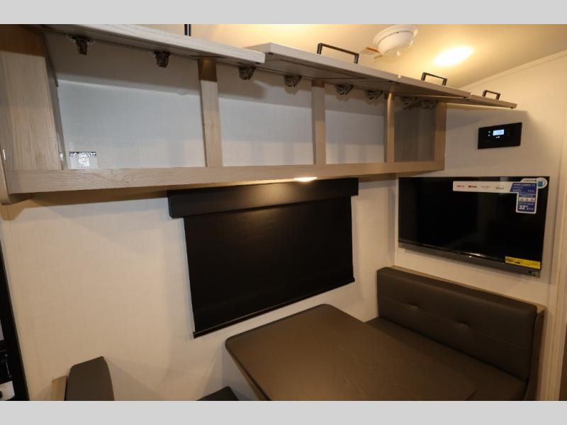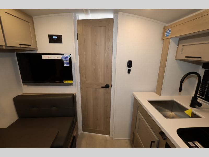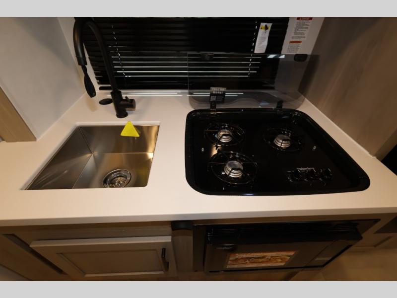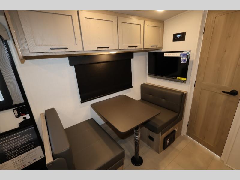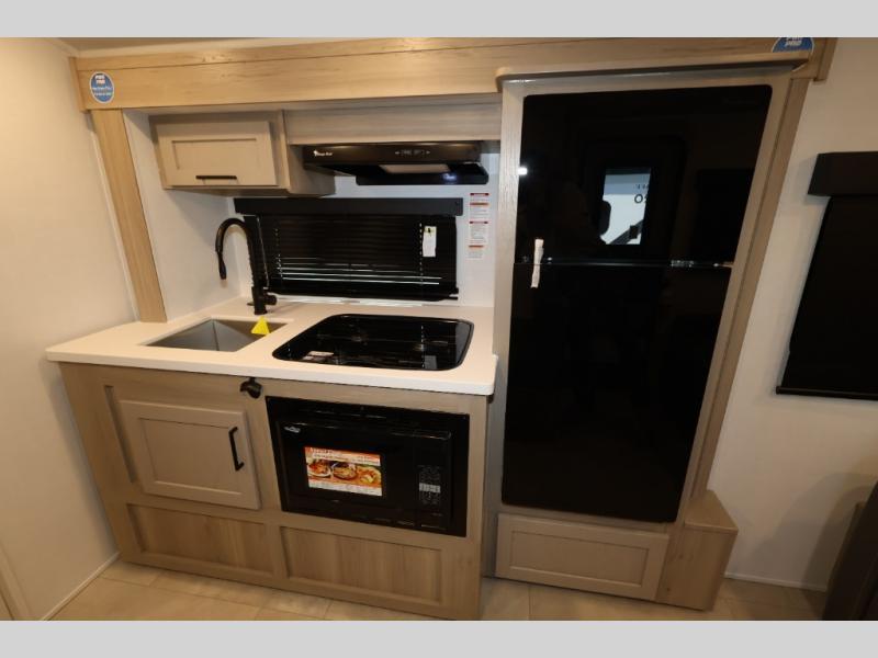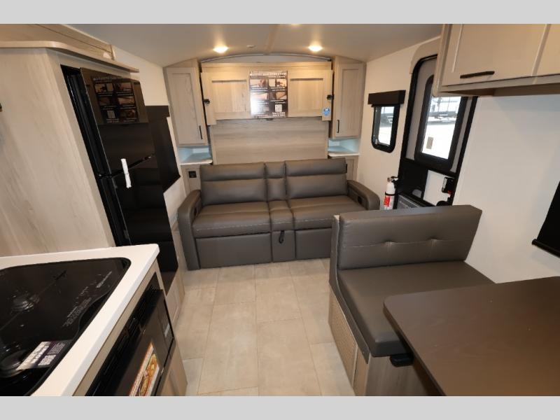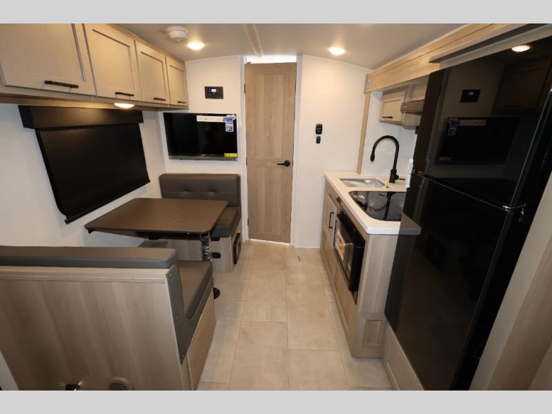Camp with your favorite person in this trailer with the versatile Murphy bed/sofa combo up front giving you both a living area and a bedroom when you so choose. If you need sleeping space for one more, the dinette will provide that once easily setup. The large window gives you great views while dining or playing games. There is extra floor space in this trailer with the kitchen slide out that offers full amenities plus a sink to keep everything clean. And the full-length rear bathroom offers a spacious area to change your clothes in privacy and get cleaned up in the large shower.