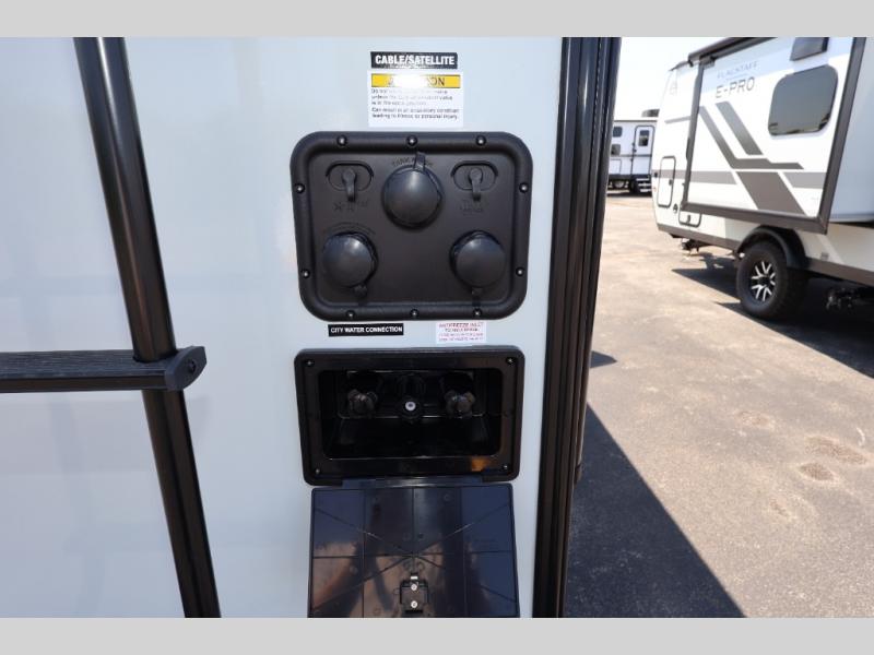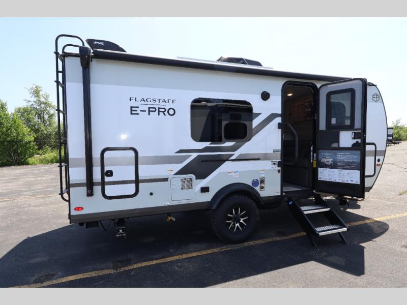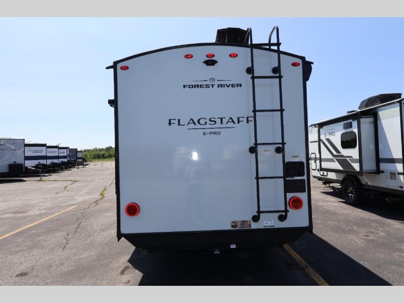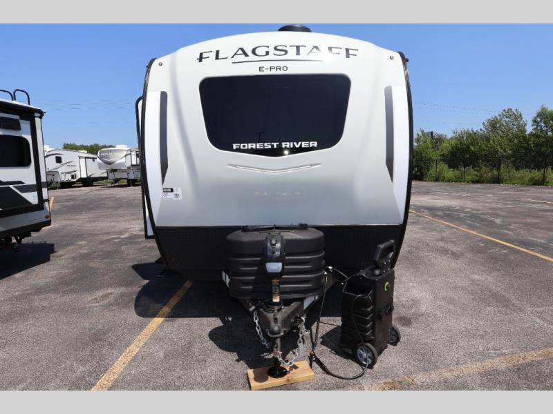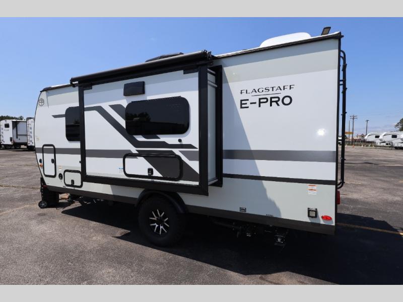 With any Flagstaff E-Pro travel trailer by Forest River, you will experience lightweight towing, style and features that will meet your needs, plus amenities that give you more than you expected! Built with interior and exterior composite sidewall construction, tongue and grove plywood flooring, and a vacuum laminated roof and walls, plus torsion axle, Rubber-Ryde suspension, and a tire pressure monitoring system for safety while traveling. And the 200 watt roof mount solar panel with 1,800-watt inverter will allow you to stay off-grid if you like. The interior offers a comfortable environment with the choice to use the air conditioner or furnace, and a 12V entertainment TV with a stereo to stay up to date on your favorite movies. Make your selection today!